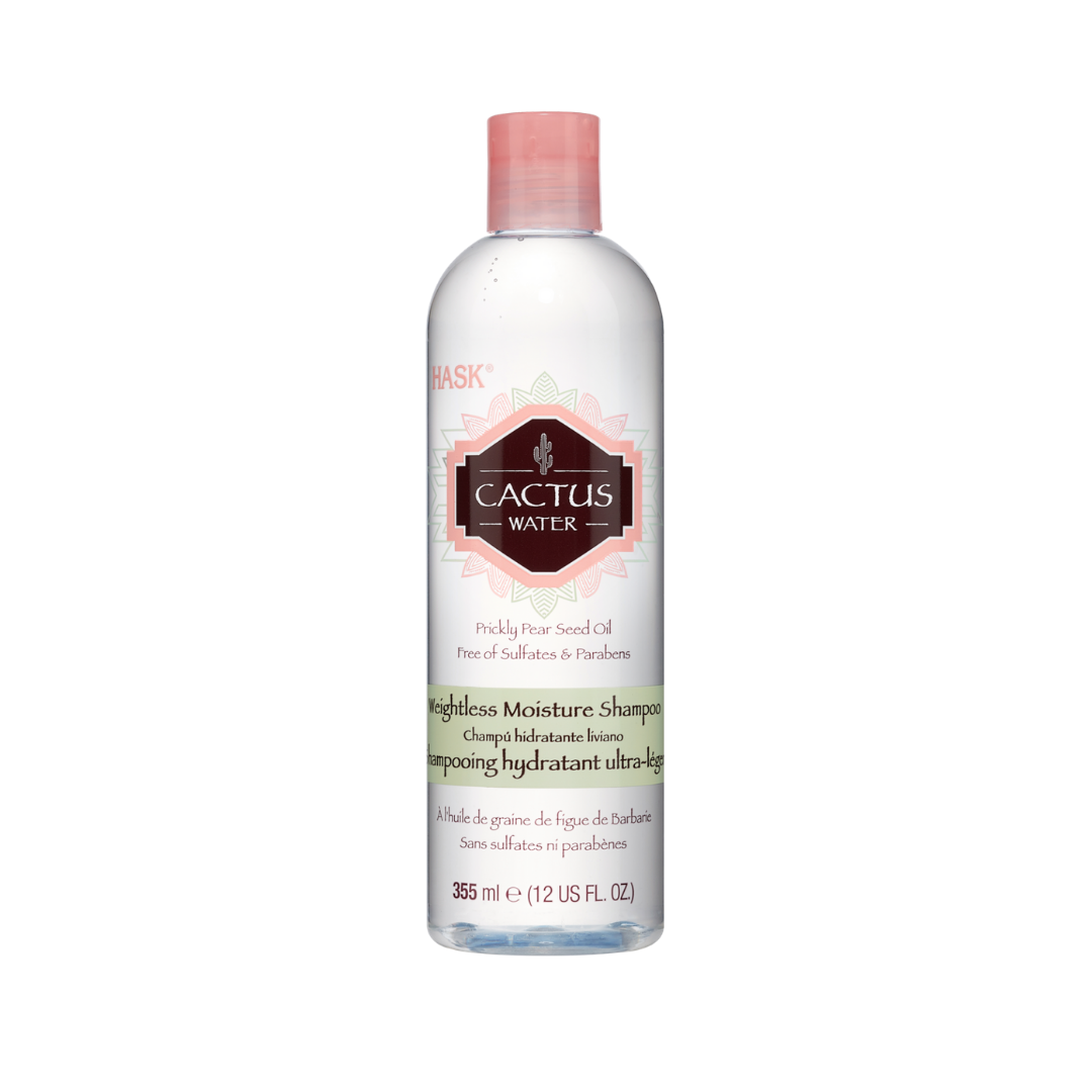 Hask Cactus Water Weightless Moisture Shampoo is free of: sulfates, parabens, phthalates, gluten, artificial colors and drying alcohol. This lightweight shampoo is infused with Cactus Water, known for its powerful electrolytes, to help revive and hydrate dry hair. Prickly pear seed oil helps boost moisture and luminous shine. Leaves hair feeling soft and looking shiny.