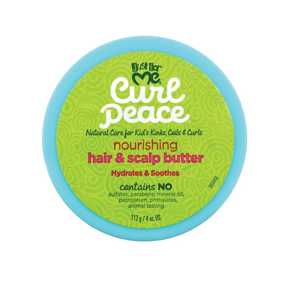 This loving butter is perfect for soothing scalps and hydrating kinks, coils and curls for boys and girls. Grapeseed Oil, Shea Butter and Castor Oil nourish and condition while sealing in moisture. Great for promoting healthy looking natural hair. Just For Me Jfm Curl Peace Scalp Butter