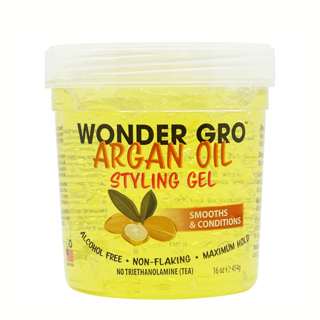 WONDER GRO ARGAN OIL STYLING GEL leaves hair smooth with a brilliant shine. ARGAN OIL styling gel helps to nourish, repair and grow hair. Wheat protein strengthens and protects hair. Like all of our styling gels, it is weightless and leaves your hair with a healthy shine and superior hold