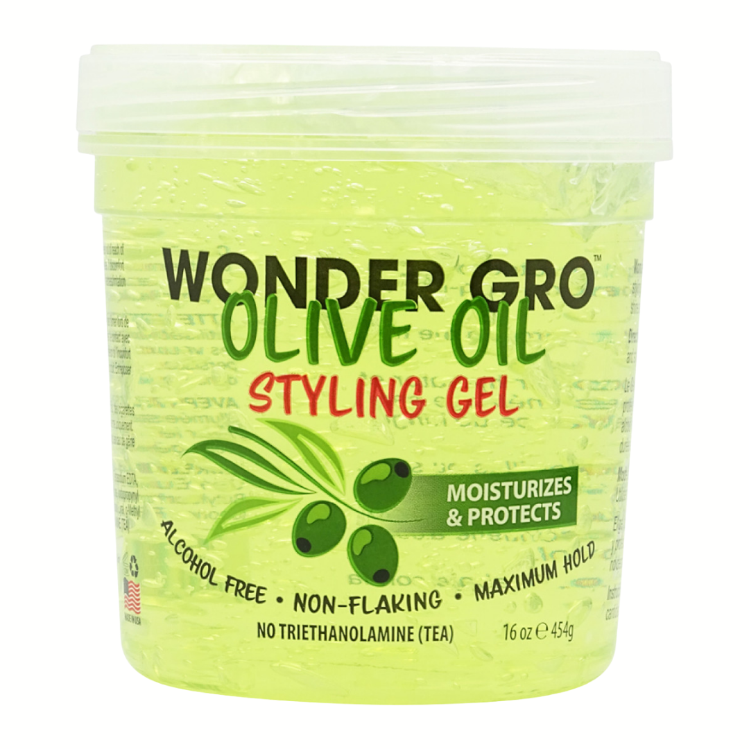 WONDER GRO OLIVE OIL STYLING GEL provides moisture and protection when styling. Our signature blend is alcohol free, non-flaking, adds long-lasting shine and maximum hold. OLIVE OIL adds softness and strengthen hair by penetrating the hair shaft and preserving moisture.